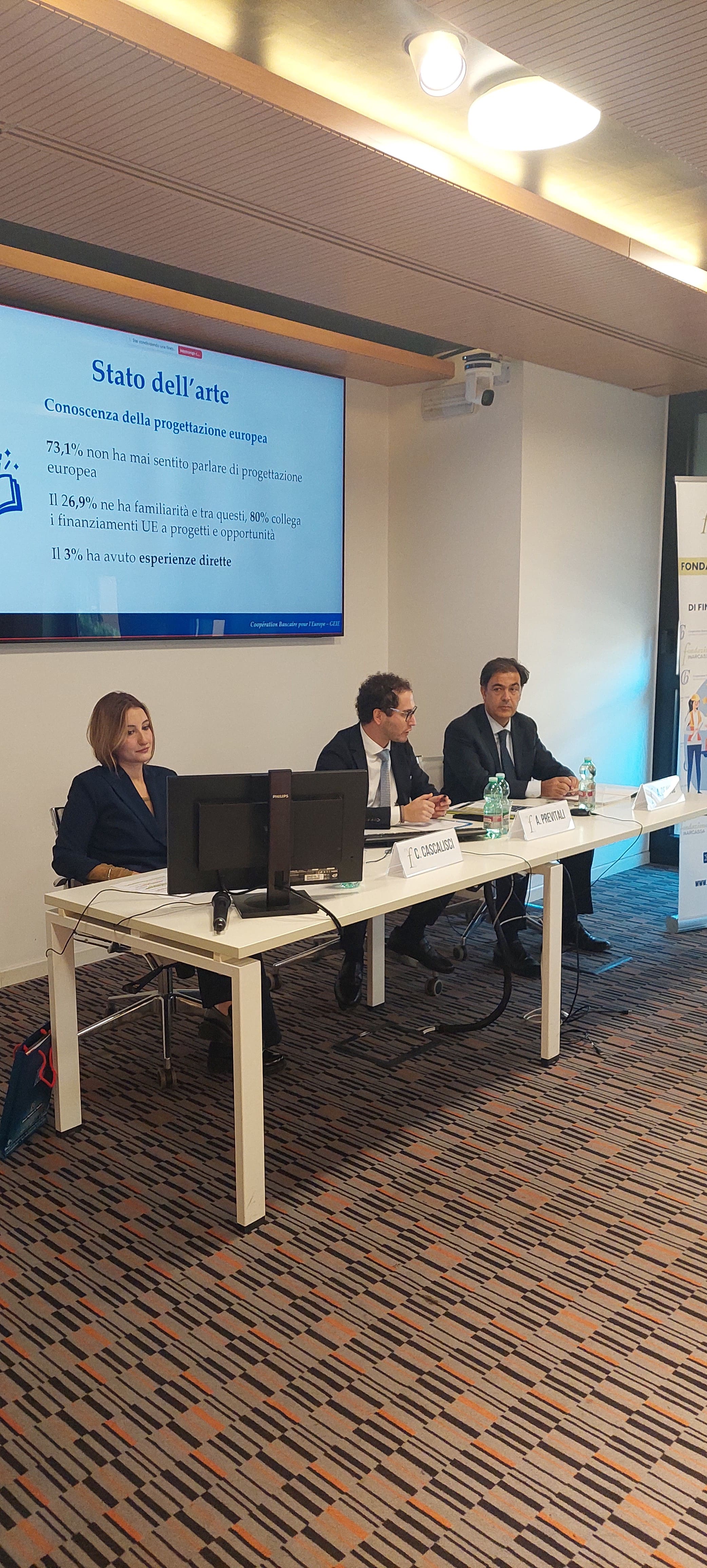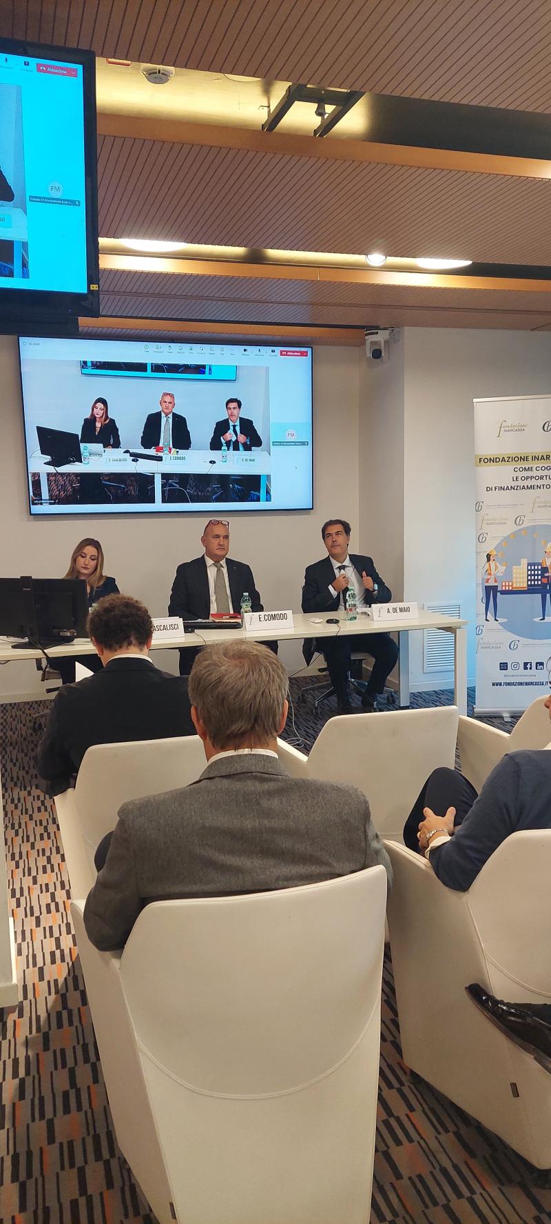 All'evento sono intervenuti come relatori il Dott. Alessandro Previtali, Business Development Manager - EU Affairs e il Dott. Fabrizio di Marcantonio – EU Project Manager - Eu Affairs, per CBE; il presidente della Fondazione Inarcassa, ing. Andrea De Maio, il vice presidente di Inarcassa, ing. Egidio Comodo e il dott. Brando Benifei, parlamentare europeo.