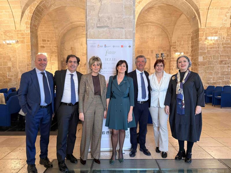 Da sinistra: Arch. Gian Carlo Magnoli Bocchi, studio Magnoli & Associati; Arch. Bruna Gozzi, Vicepresidente Fondazione Inarcassa; On. Patty L'Abbate, Commissione Ambiente della Camera; Ing. Maurizio Erbicella, studio Erbicella; On. Erica Mazzetti, Commissione Ambiente della Camera; Ing. Andrea De Maio, Presidente Fondazione Inarcassa; Marina Leuzzi, Assessore all'Urbanistica e alla Casa della Regione Puglia.