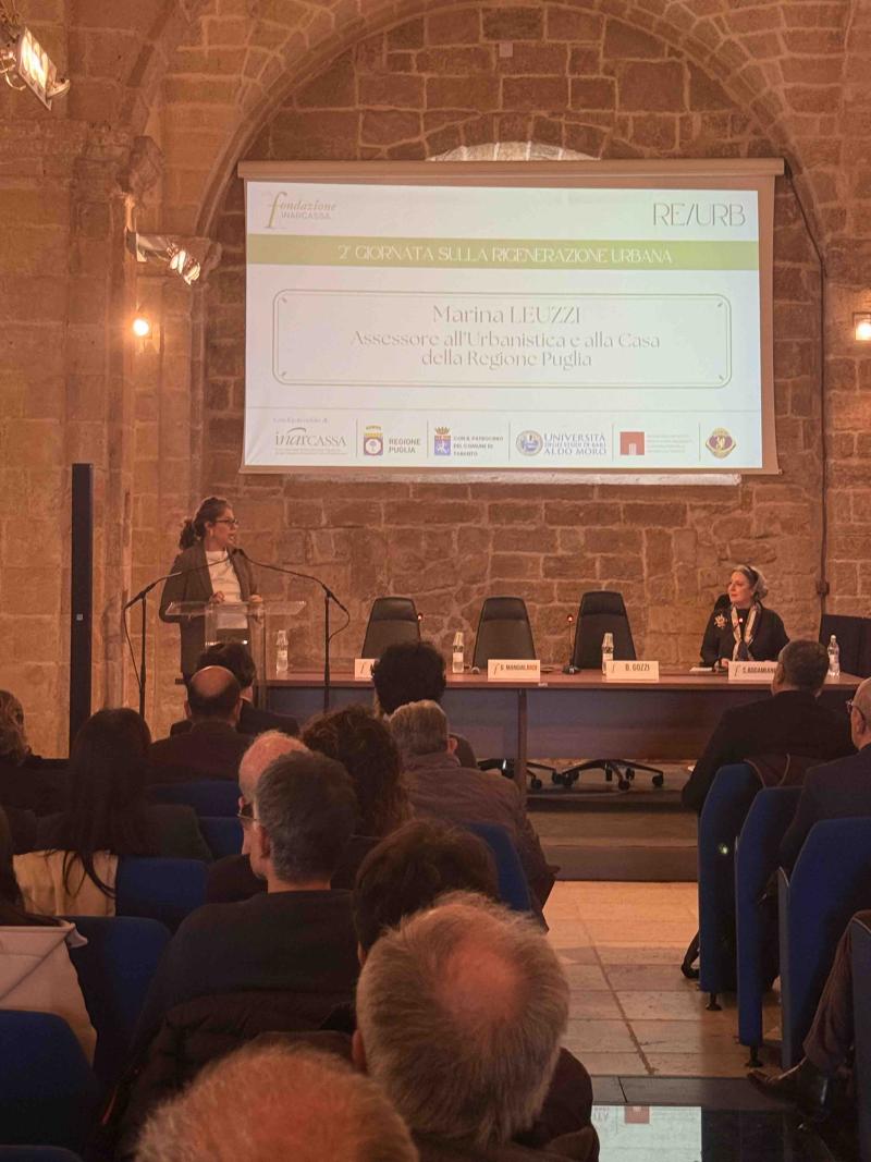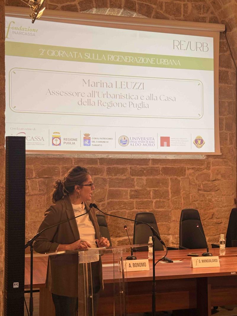 La stessa idea di responsabilità condivisa è stata ripresa da Luca Maiorano, rappresentante della Provincia di Taranto guidata da Gianfranco Palmisano, che ha insistito sulla partecipazione come elemento fondante della rigenerazione. Un passaggio che ha aperto la strada alla riflessione dell’Assessore Regionale Marina Leuzzi, la quale ha ampliato ulteriormente il quadro. La rigenerazione urbana, ha spiegato, non è mera sola riqualificazione edilizia, ma si configura come un processo complesso, capace di sussumere politiche sociali, economiche e territoriali.