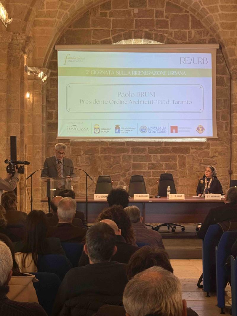 Questa progressione ha trovato una prima sintesi nell’intervento dell’Arch. Paolo Bruni, presidente dell’Ordine degli Architetti PPC della Provincia di Taranto. Il suo intervento ha segnato un punto di svolta: «La stagione dell’espansione edilizia indiscriminata è finita», ha affermato, indicando con chiarezza la necessità di un cambio di paradigma per l’assetto del territorio. La rigenerazione non rappresenta più una scelta, ma una condizione necessaria per garantire qualità urbana, sicurezza e coesione sociale.